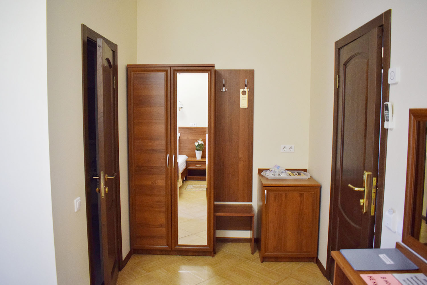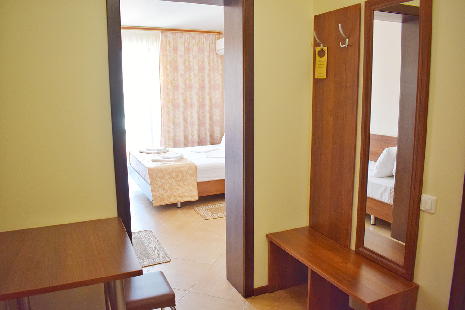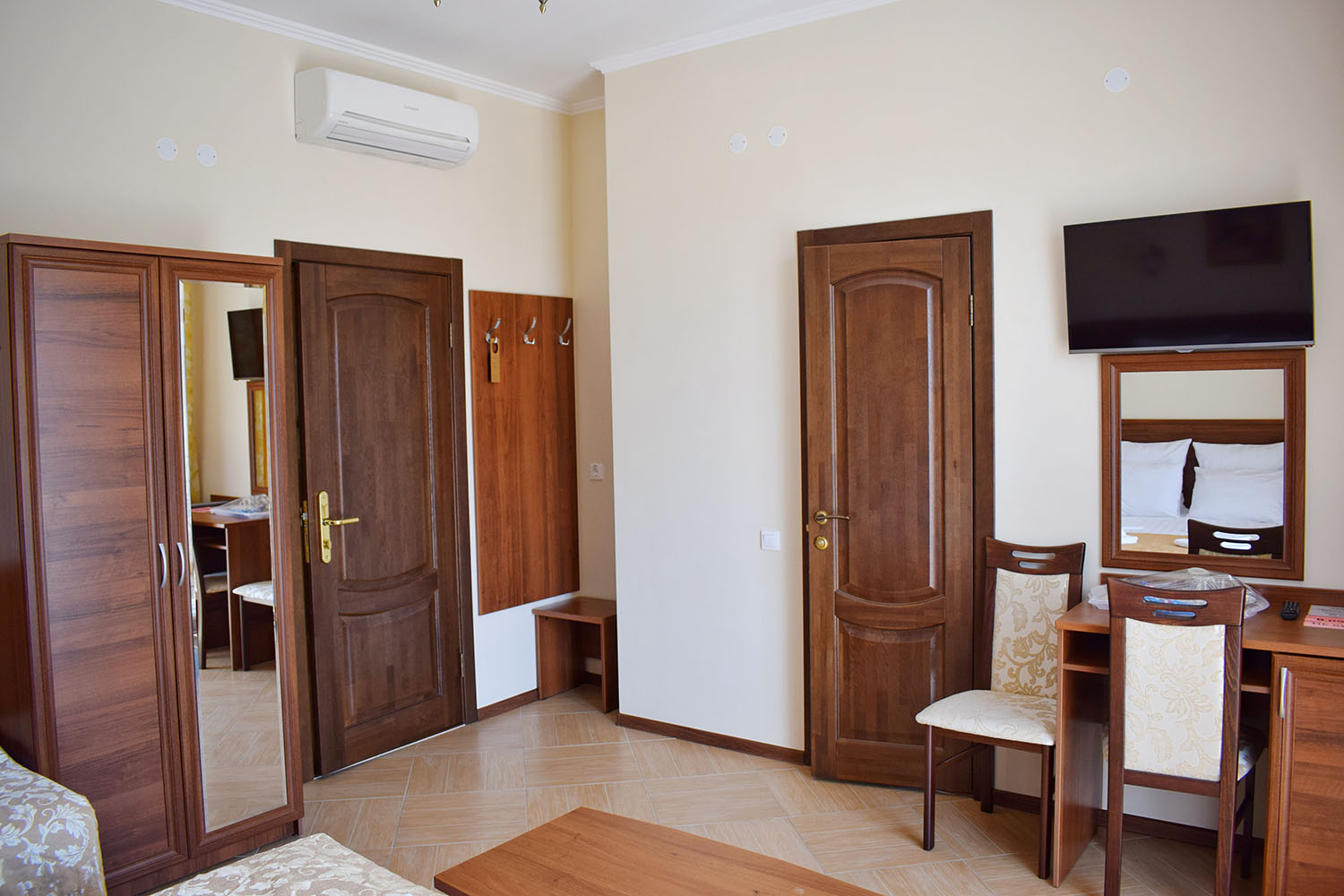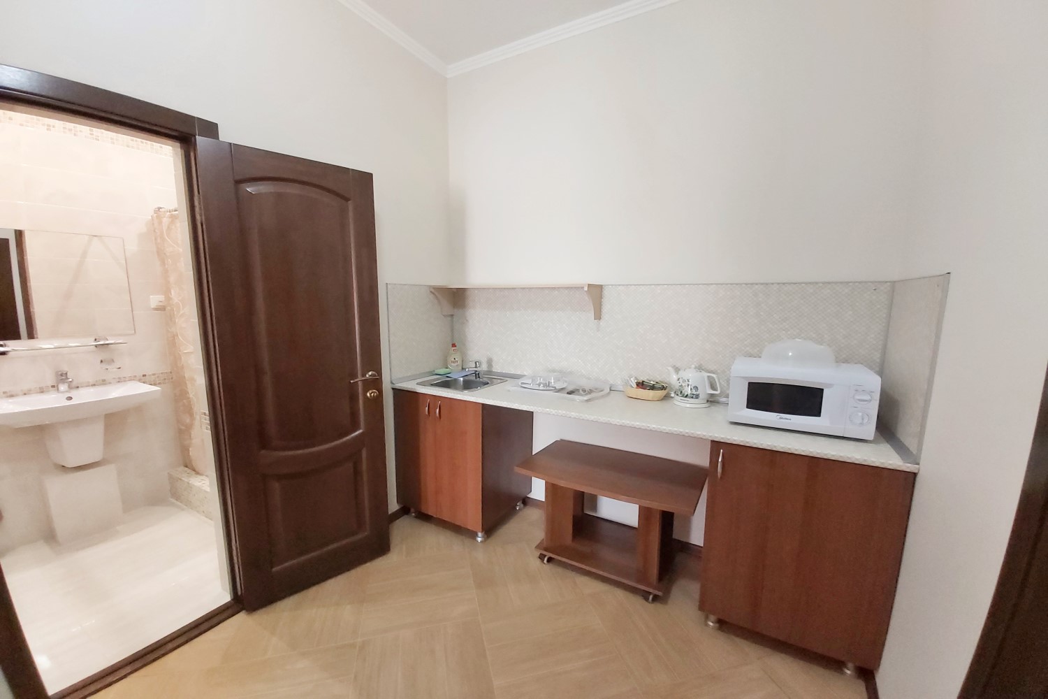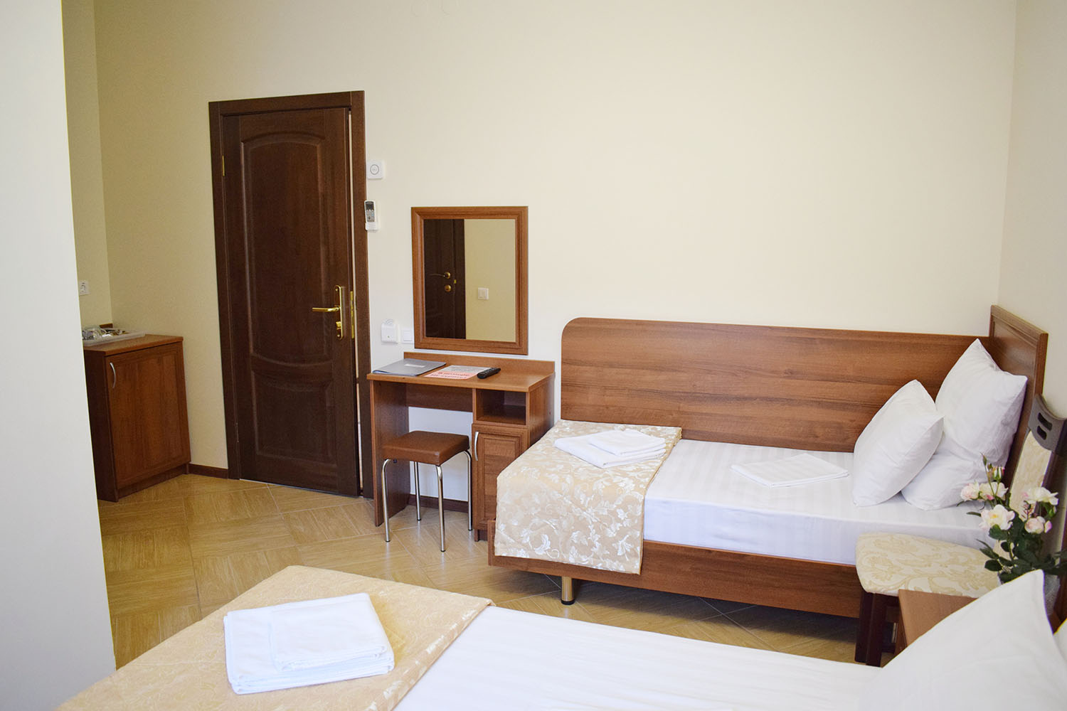 Во втором корпусе: Кухня для самостоятельного приготовления пищи с полным набором посуды, кофемашина с натуральным кофе, бойлер с кипятком, чай в ассортименте, кулер с чистой водой, общий холодильник для хранения продуктов. На каждом этаже кулер с питьевой водой, гладильная доска, утюг, пляжные полотенца для каждого гостя. Стоянка для автомобилей. Детская площадка.